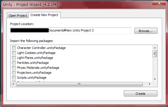 私はマイドキュメントにまず「unity Project」フォルダを作り、