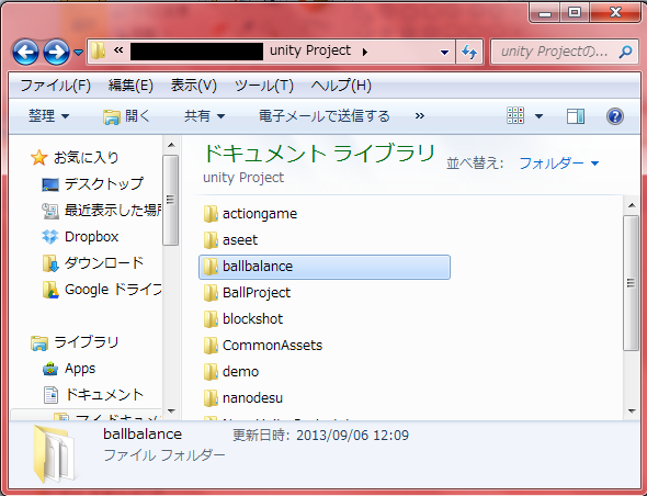 その中に「Ball Balance」フォルダを作りました。