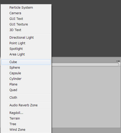 次はこのCubeともう一つ物体を作ってみましょう