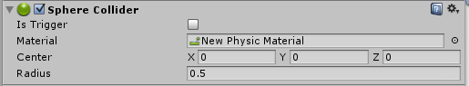 「New Physic Material」を「Sphere」にドラッグするだけで完了です。